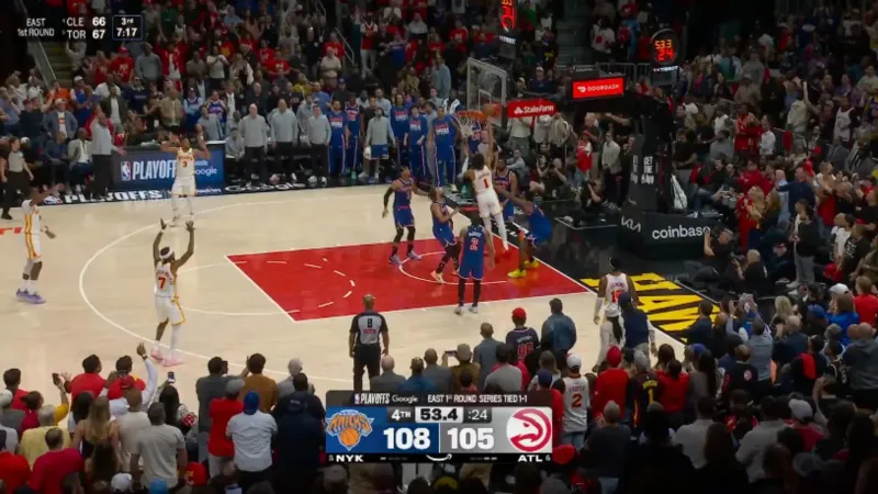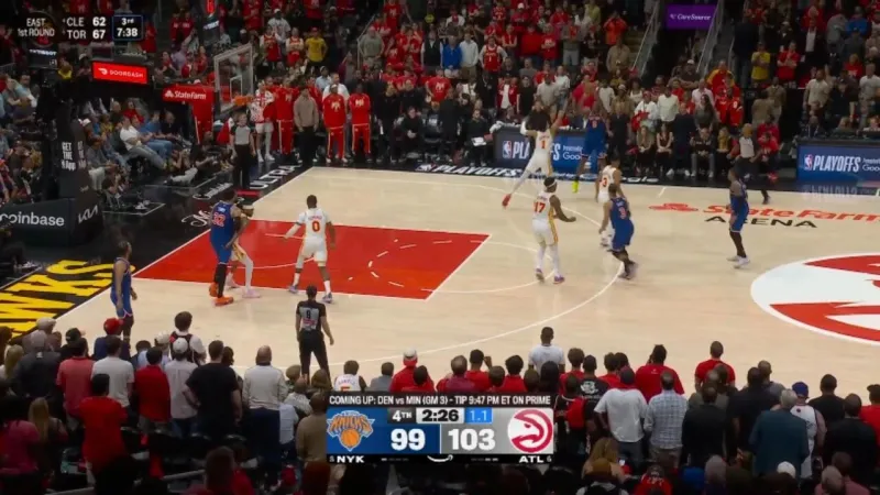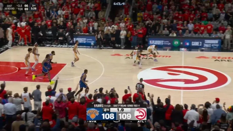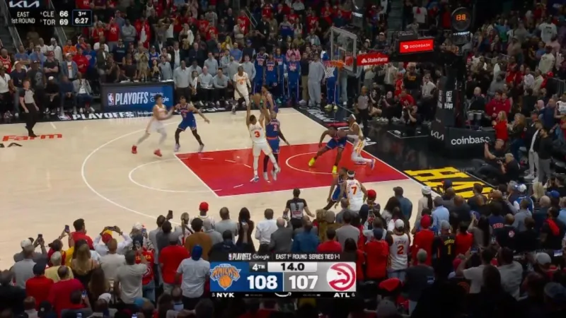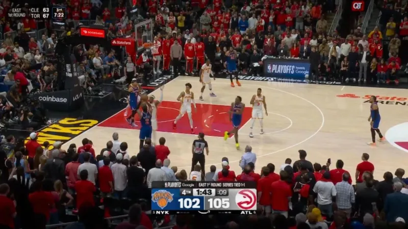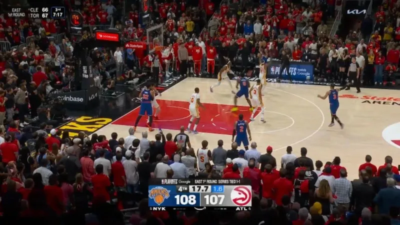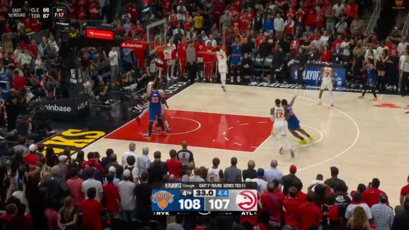 关键时刻,阿奴诺比和麦克布莱德连续命中三分、布伦森关键上篮打进,剩下1分钟前,尼克斯反而以108-105反超老鹰,看起来,老鹰G2的剧本似乎要被G3的尼克斯拿到了。